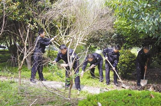 我市召開創建國家衛生城市百日沖刺動員大會以來,市公安局犯罪偵查支隊指揮室黨支部號召黨員民警從身邊做起、從小事做起、從點滴做起,以實際行動積極參與“創衛”工作。圖為4月28日上午,民警在營區修剪花木、清掃殘葉。記者 竇娜 攝