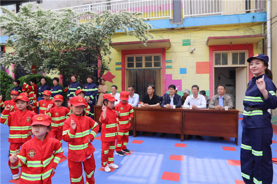 鄲城縣教體局局長(zhǎng)劉現(xiàn)營(yíng),副局長(zhǎng)王平崇,縣政府督學(xué)陶永昌,黨組成員張衛(wèi)華,副主任科員、辦公室主任張本寶,幼教辦主任李磊等觀看演練。