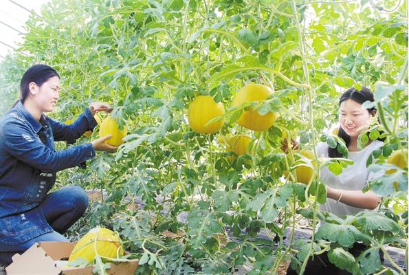 昨日上午,兩名工作人員正在基地采摘已經成熟的黃皮吊蔓西瓜。近年來,扶溝縣狠抓瓜菜產業發展,將其作為鄉村振興的主導產業之一,不斷加以推進,相繼引進、推廣20多個新品種瓜菜。目前,該縣瓜菜種植面積已達50萬畝,菜農人均純收入達4000元以上。