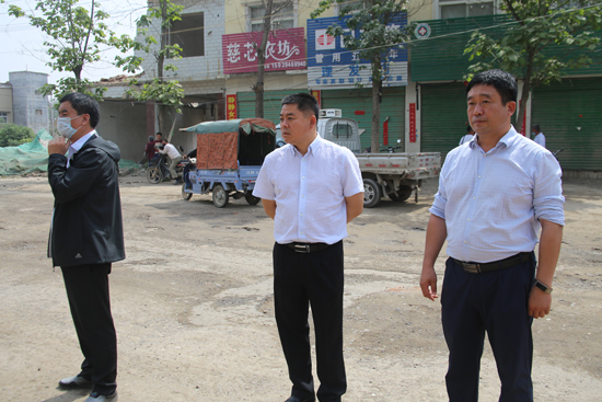 5月14日,周口港區黨委書記孫紅偉,紀委書記尚紅偉到轄區李埠口市場、縱四路施工地點、幸福家園安置區督導檢查環保治理和創衛工作開展情況。