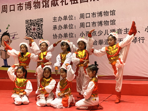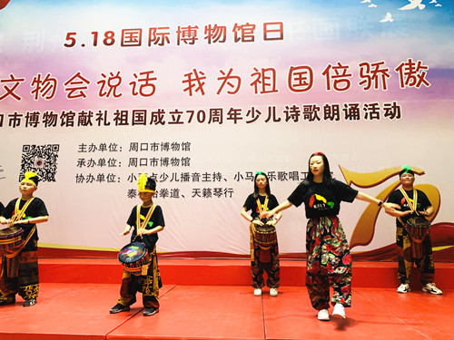 5月18日國際博物館日當(dāng)天,周口市博物館舉行系列主題活動“如果文物會說話,我為祖國倍驕傲”詩歌朗誦活動、文物繪畫作品展活動。在活動現(xiàn)場,小朋友們帶來了精彩紛呈的節(jié)目,有根據(jù)市博物館的文物創(chuàng)作的詩歌作品《文物會說話:漢代玉豬》《文物會說話:戰(zhàn)國青龍玉佩》,有集體朗誦《中華頌》《初生的太陽》《我驕傲我是中國人》,還有獨唱、舞蹈、相聲、跆拳道、非洲鼓表演等,共同為本次活動增光添彩。