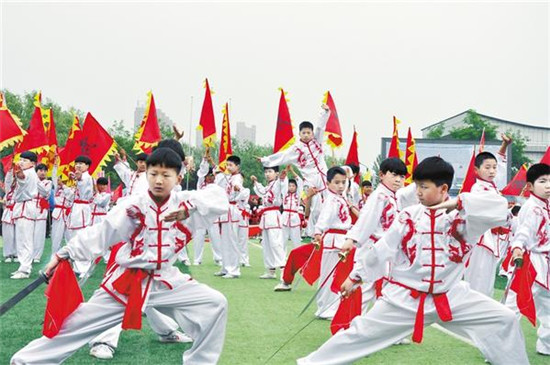 5月18日上午,為期一周的商水縣2019年“全民健身月”系列活動啟動。據(jù)悉,系列活動期間,該縣將舉辦“縣長杯”中學(xué)生足球賽、“萬步有約”職業(yè)人群健走、中小學(xué)生陽光體育運動會、周口市第四屆鞭陀交流賽等活動,全縣共有66支代表隊5000余人參與其中。圖為啟動儀式上的節(jié)目展演。記者 付永奇 攝