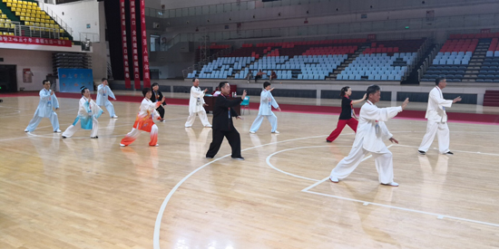 5月19日,市直機關第三屆職工運動會太極拳比賽落下帷幕,趙提等7名選手獲24式太極拳比賽一等獎,高廣華獲42式太極拳比賽一等獎,安琪獲42式太極劍比賽一等獎。圖為比賽現場。 記者 張洪濤 攝