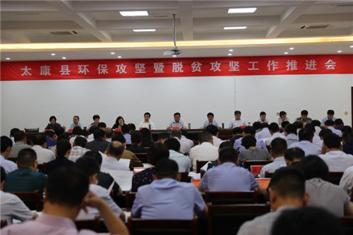 太康縣日前在脫貧攻堅指揮部視頻會議室召開環保攻堅暨脫貧攻堅工作推進會。王國璽、李錫勇等縣四個班子領導及縣副處級以上干部、各鄉鎮黨委書記、縣直單位主要負責人、縣委各部委辦常務副職參加會議。