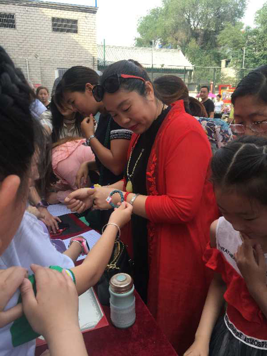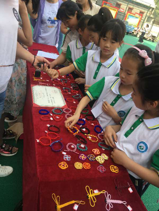 5月25日上午,沈丘縣中國(guó)結(jié)第七代傳承人李海花走進(jìn)槐店鎮(zhèn)回民小學(xué),和學(xué)校“中國(guó)結(jié)”手工編織興趣班的20名學(xué)生舉行“愛(ài)心義賣,情暖校園”主題活動(dòng)。不到半小時(shí),100多件作品被搶購(gòu)一空還預(yù)定了很多。據(jù)悉,這次義賣共得到1200余元,將全部捐給“槐店鎮(zhèn)中心學(xué)校教育基金”,用來(lái)資助該鎮(zhèn)經(jīng)濟(jì)困難師生、獎(jiǎng)勵(lì)優(yōu)秀教師和學(xué)生、資助教育教研等重大活動(dòng)項(xiàng)目。