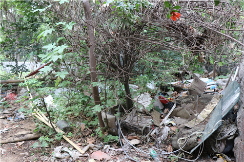 當日上午,督導組一行走進歌莉婭院內,記者看到,綠化帶內幾乎沒有創衛的跡象,多處垃圾死角,陳年垃圾未清理,瘡痍滿目,讓人不敢直視。在創建國家衛生城市的緊要關口,竟然還有這樣的地方存在,令督導組所有人咋舌。