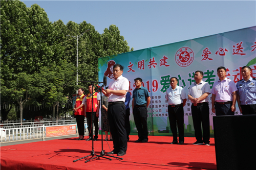 六月麥熟十里香,愛心送考又起航。6月4日上午,由太康縣委宣傳部、縣文明辦主辦,縣委網信辦、縣城管局、縣住建局、縣教體局、縣公安局、縣文廣旅局承辦的“文明共建 愛心送考”公益活動正式啟動。縣委常委、宣傳部長謝成營出席活動并講話。