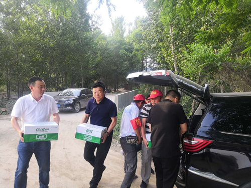 6月1日曹松偉為堅守在指揮棚的禁燒工作人員送來恒大冰泉礦泉水100件。“沒有家鄉父老鄉親的支持,就沒有我的今天!”太康縣雪松面粉廠負責人曹松偉對禁燒一線干部動情地說。