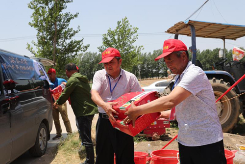 6月4日中午,太康縣委宣傳部常務副部長趙勇與瀘州老窖(懷舊)公司豫南區負責人劉光軒等工作人員一起,在王集鄉慰問后又不顧炎熱來到了馬廠鎮麥收一線,給工作人員送去礦泉水、粽子、牛奶等用品。