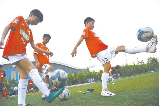 昨日下午,周口市體育中心的體育場上,一群孩子正在練習踢足球。近年來,我市大力推廣少年足球運動,吸引了眾多孩子走進綠茵場,參與足球訓練,學習足球知識,感受足球魅力,充分享受足球運動的快樂。