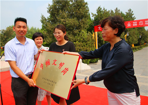 7月11日,鹿邑縣在太清宮景區舉行“全國巾幗文明崗”授牌儀式,市婦聯副主席孫媛媛、縣人大常委會副主任劉銀出席儀式并向獲得“全國巾幗文明崗”榮譽稱號的太清宮景區管理委員會授牌。縣文化廣電和旅游局黨組書記張峰主持授牌儀式。