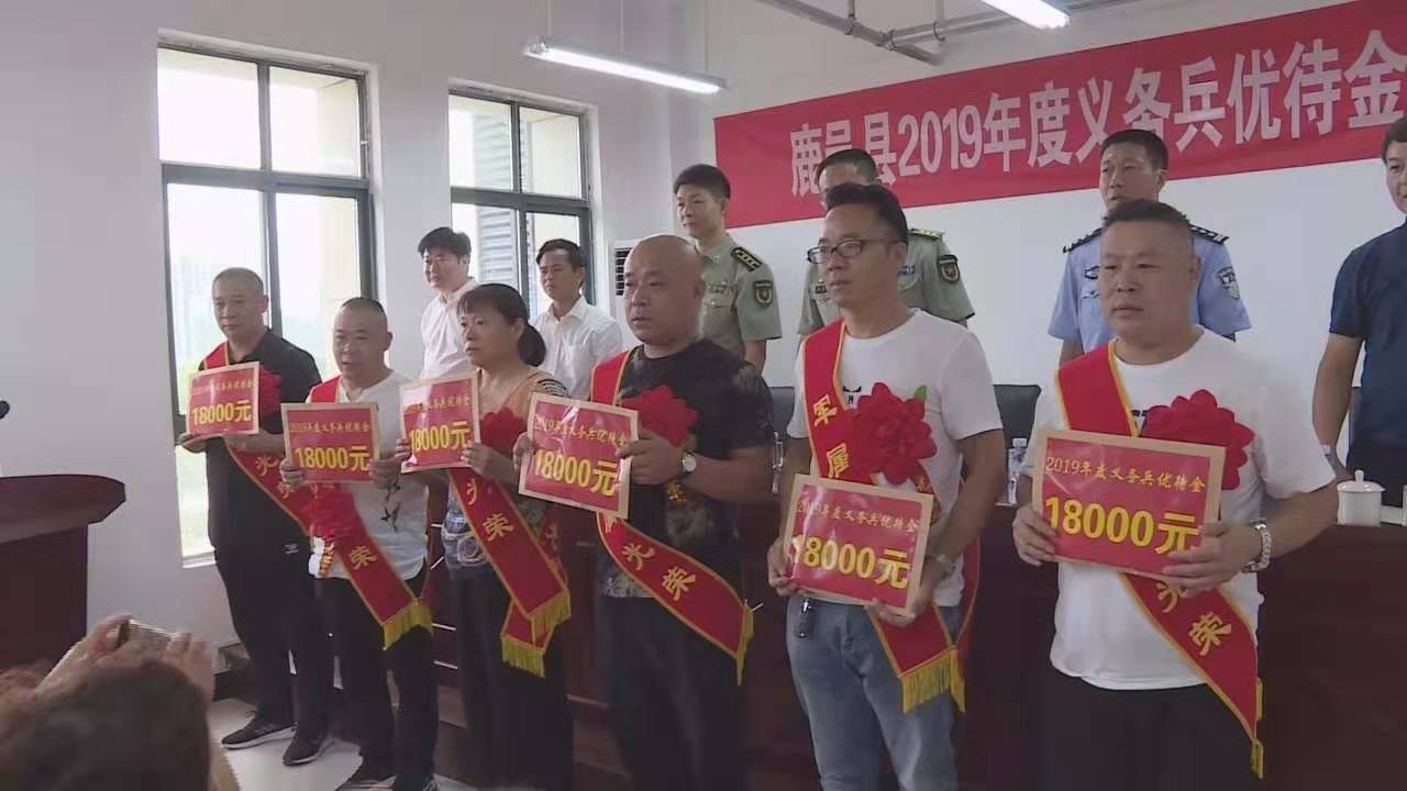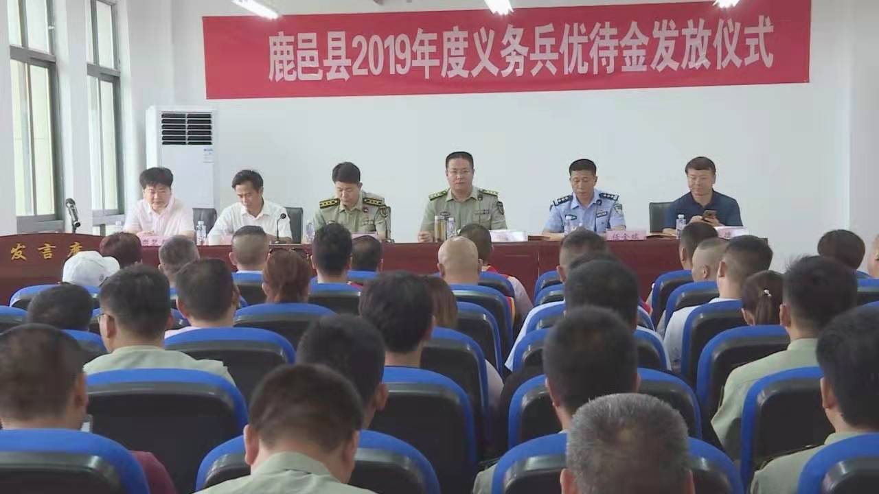 7月24日,鹿邑縣2019年義務兵優待金發放儀式舉行。縣委常委、武裝部政委杜寶森,縣人武部部長陳巍,縣政府副縣長、公安局局長任金瑞出席發放儀式,并為12名義務兵家屬代表發放了優待金。