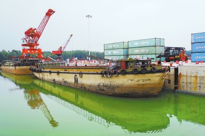 7月20日,周口中心港一派繁忙景象。該港口是我省規(guī)模最大、靠泊能力最強(qiáng)的內(nèi)河港口。隨著公、鐵、水、空“四位一體”立體綜合交通格局的逐步形成,周口中心港將成為豫貨出海口、連接長(zhǎng)三角經(jīng)濟(jì)圈的“橋頭堡”,也將成為中原地區(qū)深度融入“一帶一路”建設(shè)、通江達(dá)海的重要節(jié)點(diǎn)。河南日?qǐng)?bào)記者 陳更生 王錚 攝