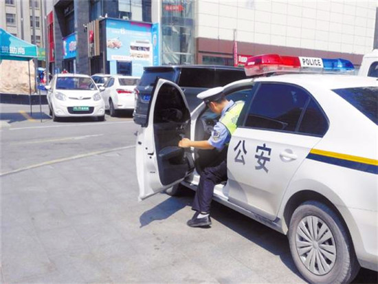 七一中路,一名交警準(zhǔn)備去往下一個(gè)執(zhí)勤點(diǎn)。