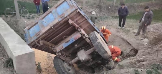 11月24日16時54分許,鄲城縣消防大隊指揮中心接到報警,稱位于省道S329潘莊指示牌附近,一輛農用三輪車側翻,1人被困,請求救援。
