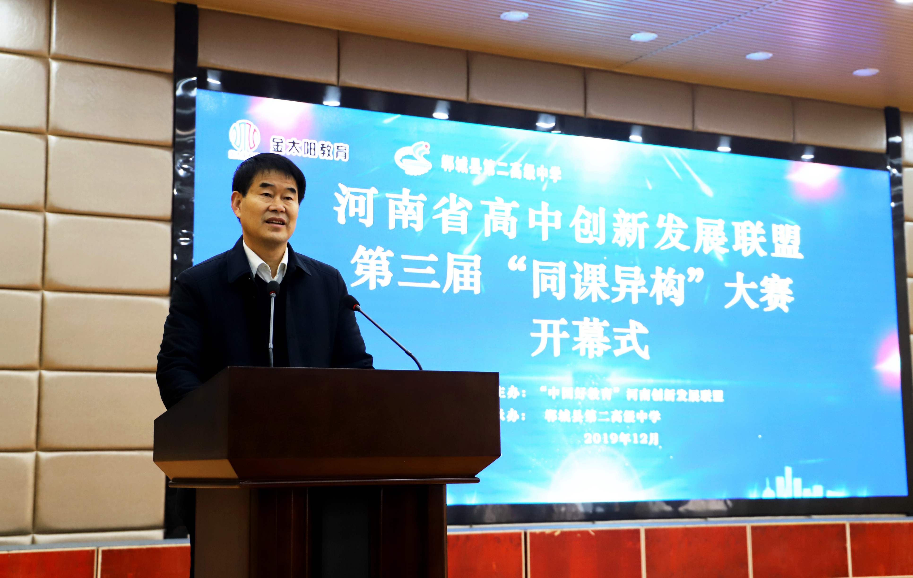 12月7日,由河南省高中創(chuàng)新發(fā)展聯(lián)盟主辦、鄲城二高承辦的全省第三屆“同課異構(gòu)”大賽開幕。鄲城縣教體局黨組書記、局長劉現(xiàn)營出席開幕式并致詞。來自全省15個縣市區(qū)的高中代表隊(duì)將在3天賽期內(nèi)各展風(fēng)采,共通思想、共享智慧、共融發(fā)展。