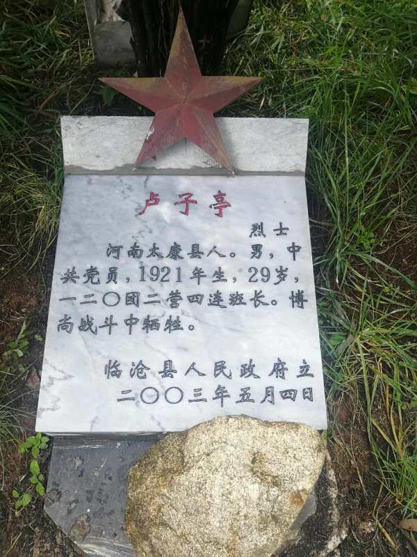 據悉,盧子亭,河南省周口市太康縣人,生于1921年,是一名中共黨員,是原云南軍區第14軍120團二營四連班長,1950年9月在云南省臨滄市臨翔區博尚戰斗中壯烈犧牲,年僅29歲。