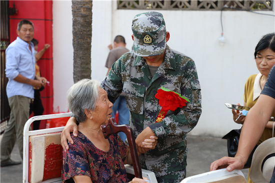當日,新兵們身著嶄新軍裝,胸前佩戴大紅花,軍姿筆挺地站列家長兩側,聆聽政委李峰的講話:“你們從體檢、政考、役前教育訓練、封閉隔離等環節中脫穎而出。在這即將奔赴軍營之際,對你們和家長表示祝賀,希望你們要不忘初心,堅定從軍報國的信念,把滿腔的熱情轉化為報國之志;要把握機會,積極主動參加訓練,爭當優秀士兵、班長骨干,在軍營建功立業;要心系故里,牢記家鄉親人殷切期盼,為家鄉爭光添彩。”