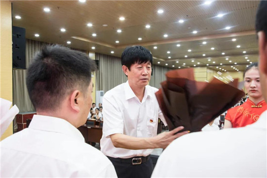 羅明黨宣讀鄲城縣教育體育局對鄲城二高趙耀校長的賀信。局黨組向鄲城二高取得優異成績的莘莘學子表示熱烈祝賀,向辛勤耕耘的全體教職員工表示衷心感謝和親切慰問,并希望二高面對高考改革的滾滾大潮和人民群眾對優質教育的迫切需求,認真總結經驗,堅定辦學信念,瞄準更高目標,進一步深化管理改革,優化教學方法,豐厚教育內涵,提升辦學水平,為推動鄲城教育高質量發展再添重彩、再立新功!