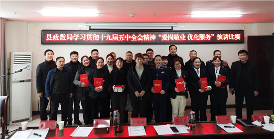 近日,由沈丘縣政務服務和大數據管理局主辦的學習貫徹十九屆五中全會精神“愛崗敬業 優化服務”慶元旦演講比賽在該縣政務服務和大數據管理局會議室隆重舉行。沈丘縣不動產登記和信息中心積極選派李燦燦、李欣奕參加比賽,均獲得優異成績。