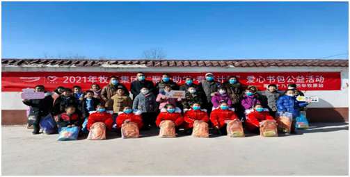 在官莊村“愛心基金會”奉獻愛心的同時,當日下午, “牧原集團”和鐵爐村愛心人士在鐵爐村發起愛心捐贈活動,向158名小學生贈送了書包和文具盒。