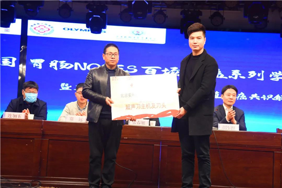 楊雨旺書記介紹了鄲城縣人民醫院胃腸外科的基本情況以及在近年發展中取得的長足進步。胡軍紅教授在致辭中指出,NOSES作為一種微創中的微創手術,是一種醫患共贏的好技術,是未來微創外科發展的趨勢和方向之一。他對不辭勞苦開展公益學術講座,推廣NOSES理念和技術的各位專家表示感謝,同時預祝系列學術活動圓滿成功。 中國胃腸NOSES聯盟向鄲城縣人民醫院贈送了《胃腸手術策略與操作圖解》等專業書籍20本和超聲刀一套。