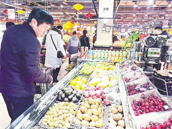 臨近春節,我市水果市場迎來了銷售的旺季,各大超市、水果市場內,水果品種豐富、供應充足,大部分國產水果價格都相當“親民”。圖為市民在選購水果。記者 孫安平 攝