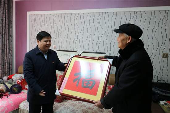 每到一處,李剛一行都與老干部促膝交談,關(guān)切詢問他們身體狀況和生活情況,并通報了過去一年鹿邑經(jīng)濟社會發(fā)展情況和當前重點工作,認真傾聽他們對鹿邑發(fā)展的意見和建議,并代表縣委、縣政府對老干部長期以來為鹿邑經(jīng)濟社會發(fā)展作出的重大貢獻表示感謝,衷心祝愿老干部們新春快樂、闔家幸福。
