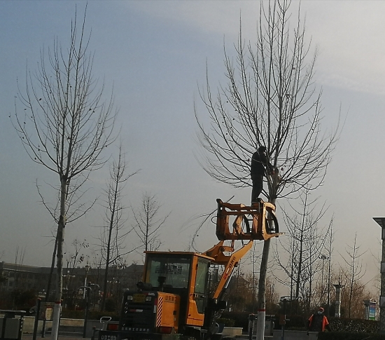 1月29日,在市城鄉一體化示范區政通路上,有工作人員正在修剪樹木。工作人員說,修剪樹木的最佳時期是冬季,一是樹上沒有葉子,這樣可以更輕松地查看樹的結構;二是冬季樹木正在休眠,在睡眠狀態下,樹木受到修剪的沖擊較小。圖為工作人員正在修剪路邊的行道樹。(周口日報·周道客戶端記者 馬月紅攝)
