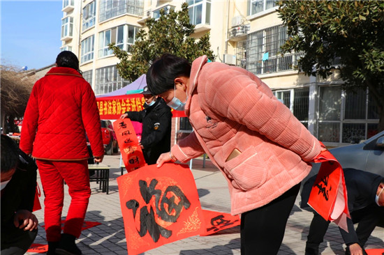 “春節前夕,縣書法家協會為群眾傾心打造文化盛宴,組織若干場義寫春聯進社區活動,旨在弘揚祖國傳統文化,豐富群眾文化生活。”鹿邑縣書法家協會主席韓文甫說。