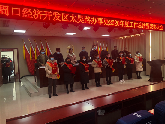 太昊路辦事處本次共表彰鄧昌全等好公公16名,王寬等好婆婆14名,周金菊等好媳婦17名,孔松家庭等文明家庭25個,劉新等學習模范9名;羅嵩等棚戶區改造先進個人6名,時金鑫等為民服務優秀干部5名,李四照等優秀支部書記3名,李付國等優秀居民組長9名,楊希等優秀矛盾調解員6名,張春霞等最美社區干部6名,周口市綠洲服務有限公司等優秀物業管理公司6家,中匯社區等平安建設先進社區4個,東來尚城等創衛先進小區6個,嘉禾花園等疫情防控先進小區6個,周口恒通新能源有限公司、周口匯林置業有限公司、周口鉑悅府房地產項目三家愛心企業。