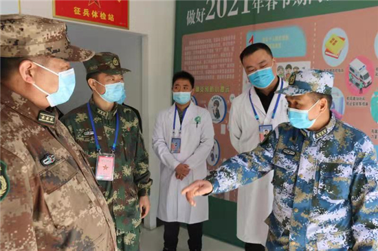 湯維政走進內(nèi)科、外科、五官科、心電圖、心理測試等檢查科室,實地查看體檢站基礎設施、體檢流程、人員配備、疫情防控、后勤保障等情況。他看到體檢場所按照流程合理、尊重隱私、閉環(huán)管理的要求,結(jié)合疫情防控的需求優(yōu)化診室設置,醫(yī)務人員嚴格把控體檢項目的各個關口,給予了肯定和贊揚。湯維政與現(xiàn)場候檢的應征青年親切交談,了解他們的年齡、學歷、家庭等情況,對適齡青年、大學畢業(yè)生踴躍參軍、報效祖國的行為表示贊賞,勉勵他們積極接受祖國挑選,投身軍營建功立業(yè)。