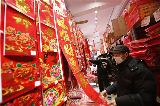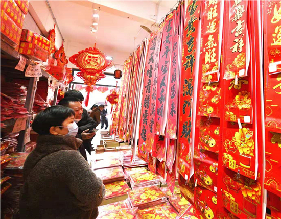 今年,年貨市場的燈籠、春聯品種豐富,印刷工藝日益提升,春聯品種多而全,燈籠市場更是琳瑯滿目,制作非常講究。③2