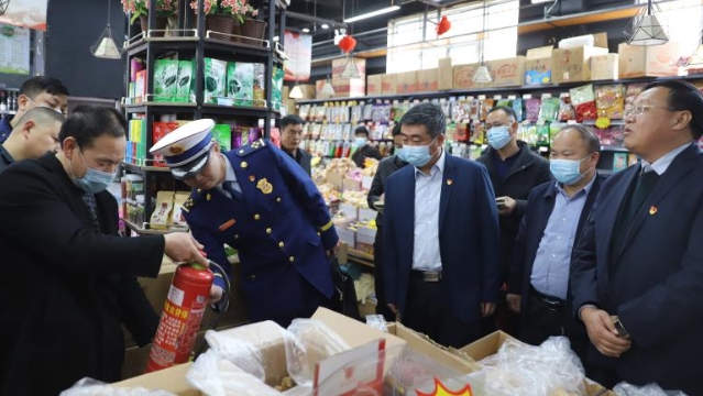 為落實(shí)河南省煙花爆竹禁售禁放工作電視電話會(huì)議和全市煙花爆竹禁售禁放暨春節(jié)期間污染防治工作會(huì)議精神,做好春節(jié)期間火災(zāi)預(yù)防、煙花爆竹禁售禁放工作,確保節(jié)日期間物資供應(yīng)充足、市場秩序持續(xù)穩(wěn)定,2月9日,周口港區(qū)黨委書記孫鵬前往轄區(qū)居民社區(qū)、市場督導(dǎo)春節(jié)期間各項(xiàng)保障工作落實(shí)情況。港區(qū)黨委委員杜廣賢、公安分局局長康群泉陪同。