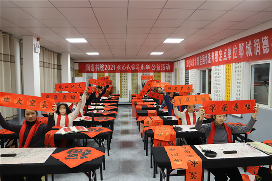 春節前夕,鄲城縣的書法家和書法愛好者們便更顯活躍,他們進機關、進企業、進社區、進學校、進農村,把富有中國特色的新春祝福,富含中國傳統文化的春聯,送到千家萬戶。