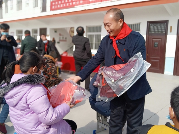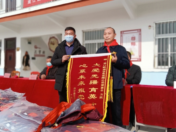 春節臨近,方凱自掏腰包6萬余元,購買164套新校服捐贈給西華縣艾崗鄉半截樓小學,一如既往地將大愛播撒與傳遞。說起方凱的愛心行動,那是不勝枚舉。方凱10余年來堅持幫貧濟困,每年都采取不同的方式,為貧困戶、貧困大學生、環衛工、留守兒童、敬老院、貧困學校、福利中心智障孩子和災區等進行愛心捐助,已經累計捐款捐物達1600多萬元。為了表達對方凱的謝意,西華縣艾崗鄉半截樓小學向方凱贈送了“大愛無疆育英才,心系未來報黨恩”的錦旗,同時,還鄭重聘請方凱為該校名譽校長。