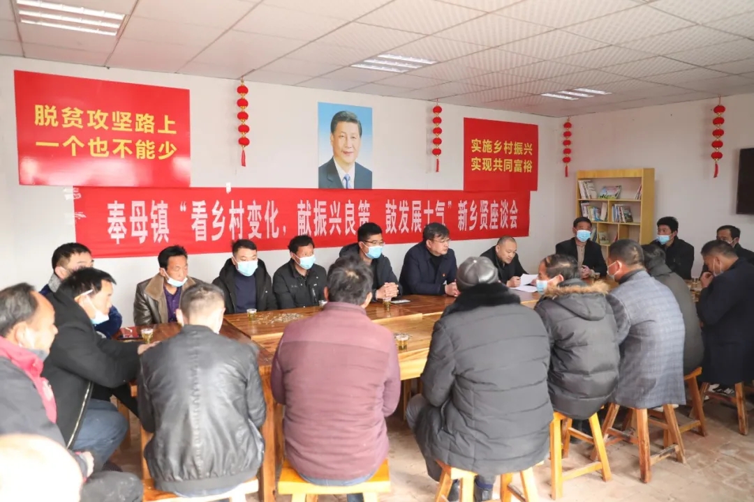 匯聚眾人之力才是發展之力,凝聚眾人智慧才是最高智慧。春節之際,奉母鎮黨委為進一步調動鄉賢的積極性和創造性,共同探討家鄉的發展與建設,最大限度贏得鄉賢對家鄉發展的支持和反哺,有效推動資金回流、項目回歸、信息回傳、人才回鄉,集發展“錦囊妙計”,匯聚助推鄉村振興的新力量,特意把七二村的“看鄉村變化,獻振興良策,鼓發展士氣”新鄉賢座談會會場布置到“鄉村大食堂”。奉母鎮黨委書記陳鵬、武裝部長胡波濤參加座談會。陳鵬作了講話。