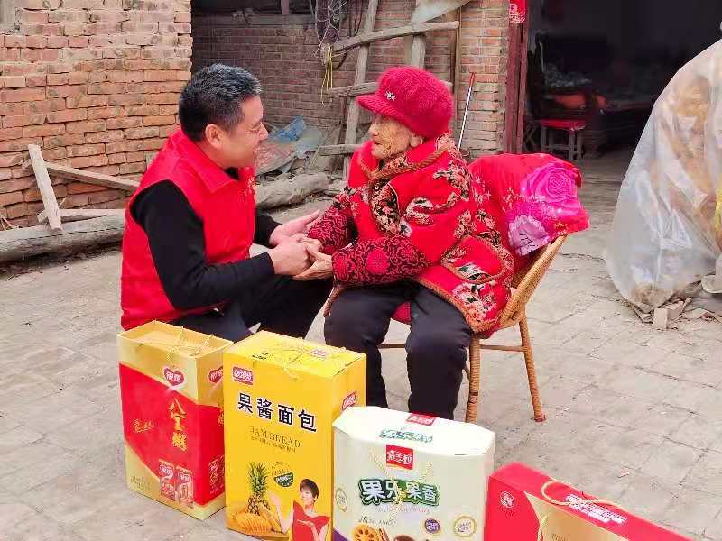 按照中國(guó)民間傳統(tǒng)習(xí)俗,新春伊始,人們都要穿戴新衣新帽走親訪友,拜年送祝福。2月12日,農(nóng)歷正月初一一大早,遜母口鎮(zhèn)心連心雷鋒服務(wù)隊(duì)隊(duì)長(zhǎng)張新靜帶領(lǐng)志愿者張建設(shè)、劉賀敬、馮茹愿、賈衛(wèi)蒙、馮柯馨、歐樣等人就敲開了106歲的張占花家門。當(dāng)日,他們帶著核桃牛奶、面包、八寶粥,專門來為老人來拜年。 “新靜他們來了……”一聽聲音,張占花老人就猜到了是誰(shuí)。經(jīng)過去年一年的幫扶,張新靜等人已經(jīng)與照顧占花老人成了“熟人”。“這些孩子們可沒少幫俺,又送物又幫俺打掃庭院”。看到志愿者們的到來,張占花老人的臉上掛滿笑容。