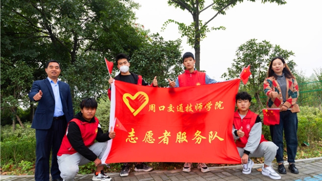 近日,在周口城鄉一體化示范區人和路和平安路交匯口,一群身穿印有“周口交通技師學院”字樣紅色馬甲的忙碌身影引來眾多路人注目。