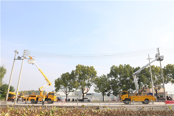 “作業工具已檢查校驗完畢,天氣良好風力2級,作業人員絕緣服已穿戴完整,工作任務已經明確,請求登車!”“可以登車開展作業。”10月25日至27日,在國網周口供電公司舉行的縣域配網不停電作業勞動競賽現場,參賽選手按照操作規程進行作業,裁判員目不轉睛地注視著選手們的每一個操作動作,觀摩隊員認真觀看操作步驟并記下實操中易忽視的內容,嚴肅而緊張的氛圍彌漫在整個賽場。