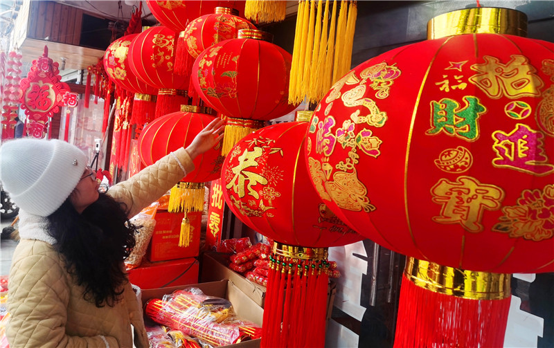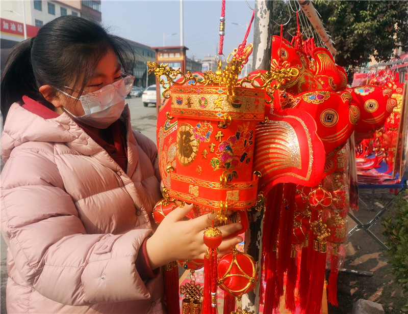 1月27日,市民在認真挑選著新年的裝飾品。春節臨近,虎年生肖飾品、對聯、中國結、福字、大紅燈籠等“紅色年貨”火了年貨市場。據了解,各種寓意祥和的春聯、以老虎為主題的各種窗花、各種飾品最受市民歡迎。③10