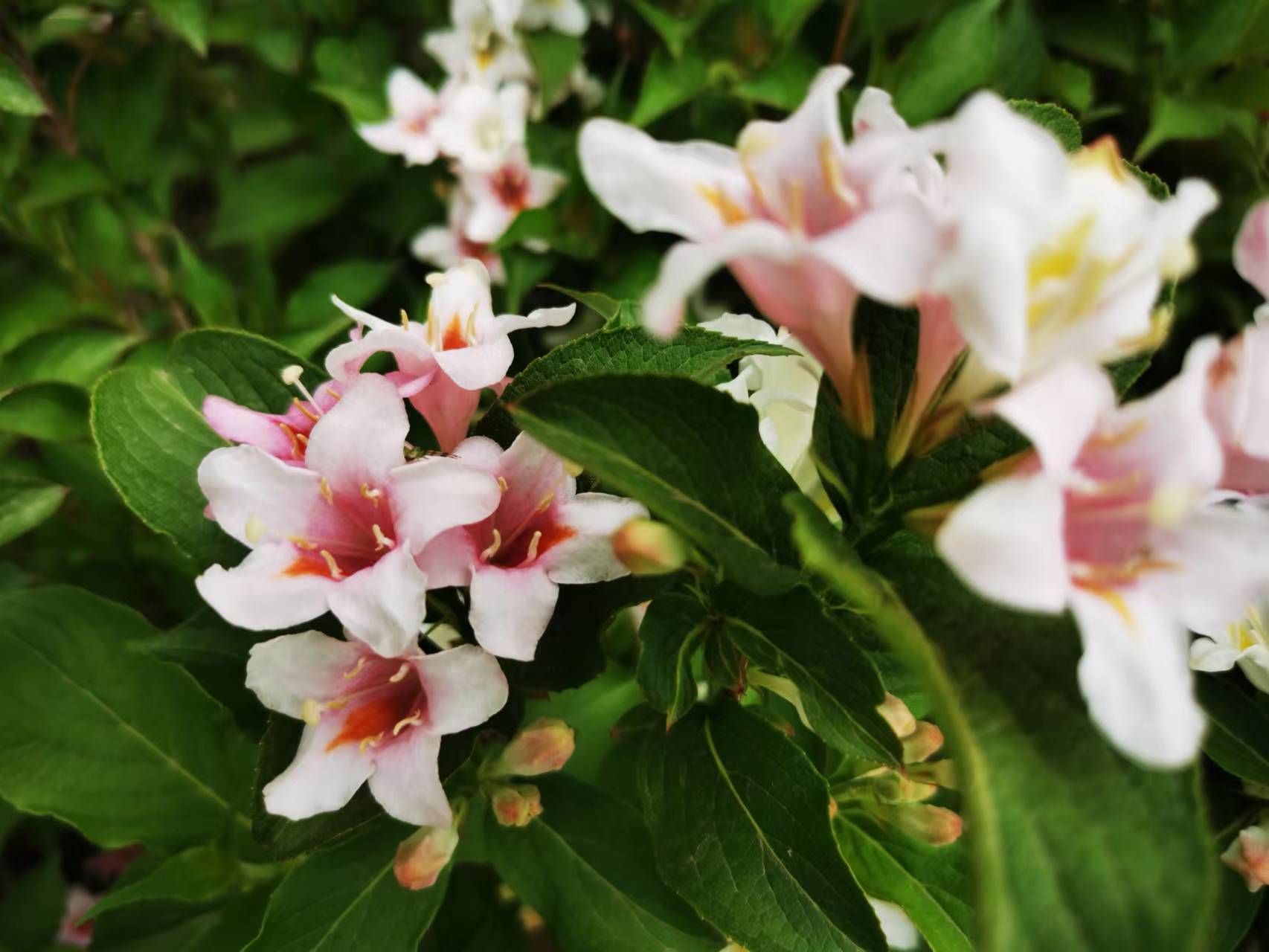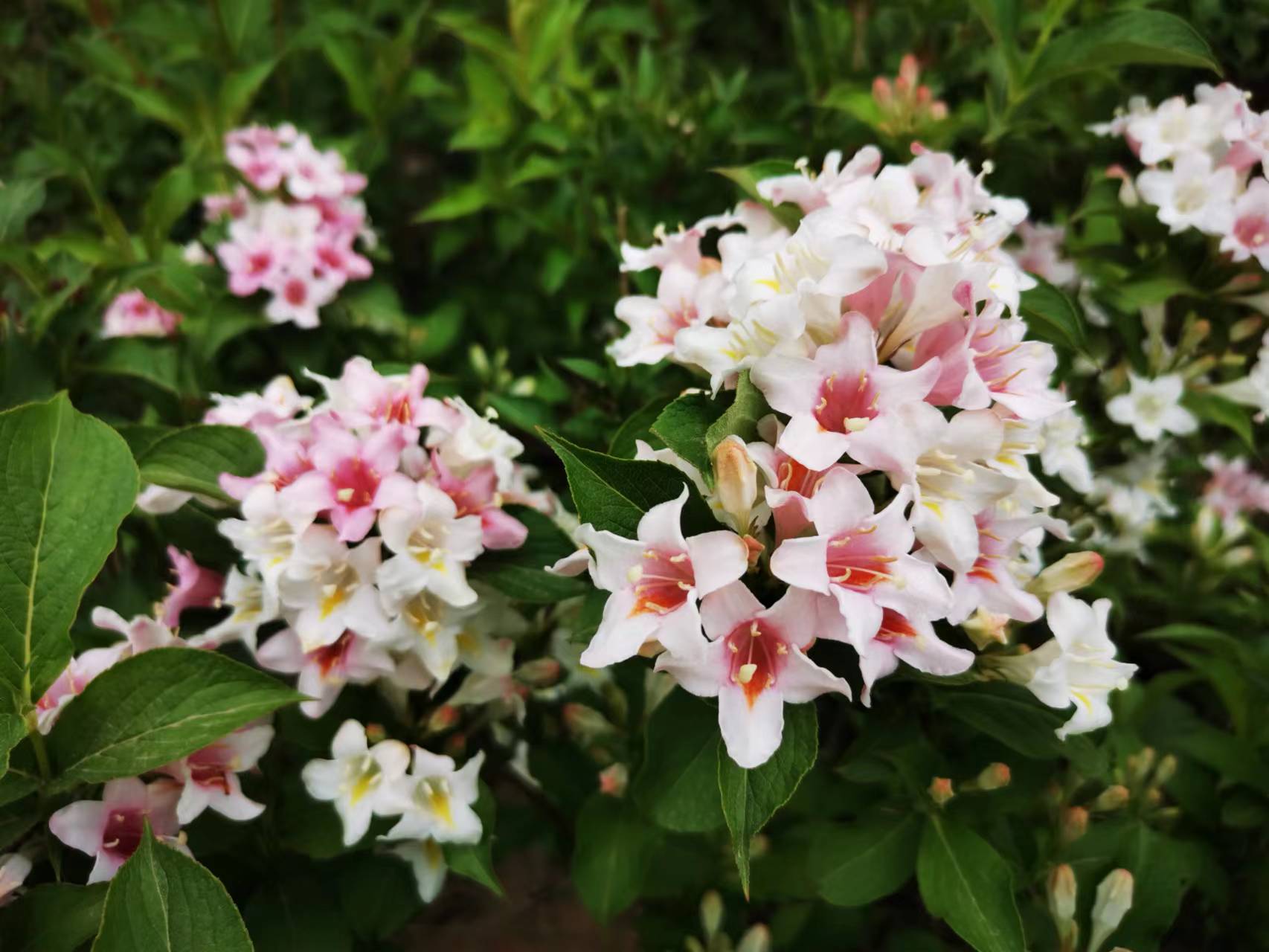 錦帶花又稱五色海棠,花色艷麗,多為粉色、粉紫和白色花朵,盛開時花瓣與綠色的枝葉交相輝映,“碧葉柔枝潤粉紅,芳芯弄雪有幾分”,描寫的就是錦帶花。據了解,錦帶花的花期將會持續至5月中下旬。
