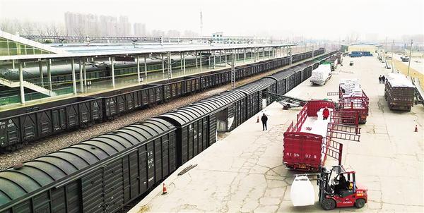 2月22日上午,漯阜鐵路周口站貨場一片繁忙,滿載農資的火車到站卸貨,有力保障了我市農業生產的物資需求。